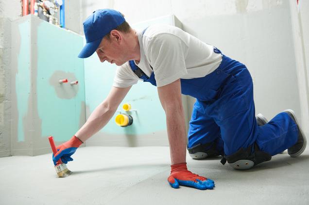 然后大面積涂抹,先在墻壁上,然后再在地面上,涂刷2至3次,將前者和后者交叉。應該指出的是,您必須等待第一個防水表面變干后再刷一次。間隔時間取決于一天中的溫度和濕度。通常,夏季為2個小時,冬季為稍長一些。